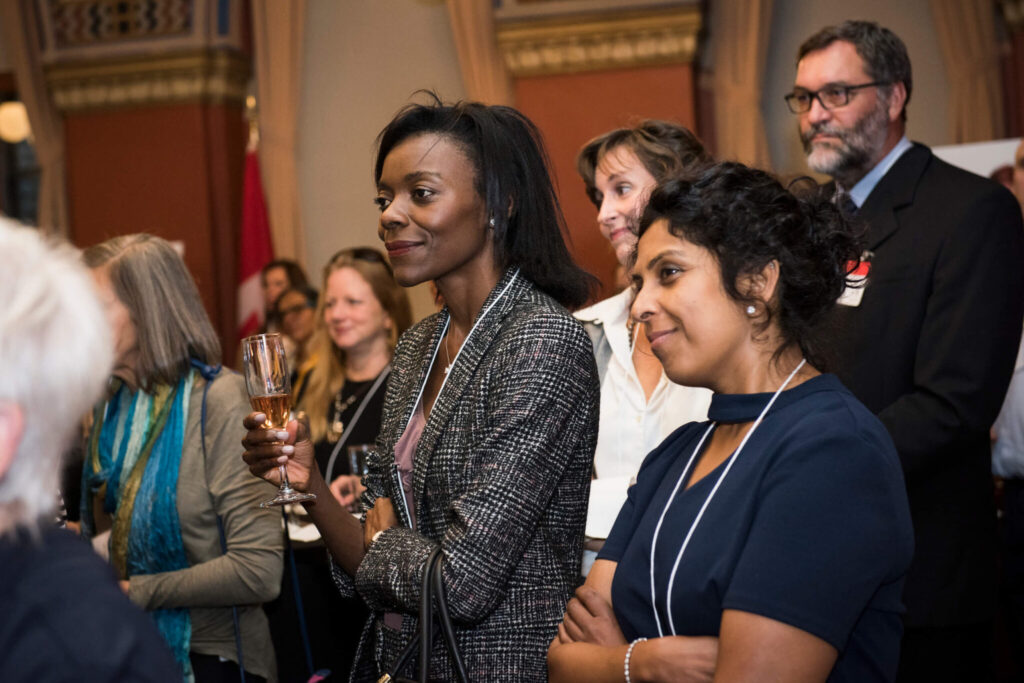 My 15 minutes in the spotlight were an exhilarating experience – an advocate’s version of the Olympics. In fact, I had a clock at my feet, counting down the seconds, reminding me that even if my stories landed, I’d have to choose between talking over the laughs or running out of time. I ended my last bit of spoken word just as the numbers hit zero, and turned around to the table behind me for some water. When I turned back, the women in the room were on their feet.